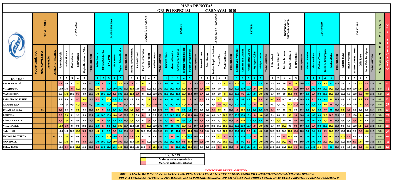 The results of Rio’s Carnival Parade in 2020 were: