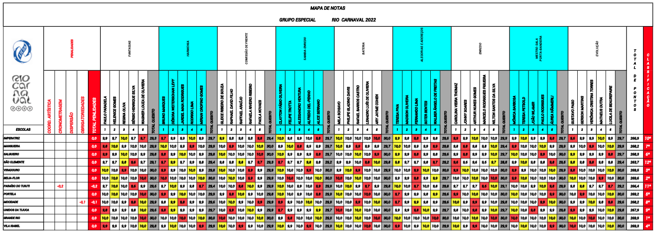 The results of Rio’s Carnival Parade in 2022 were: