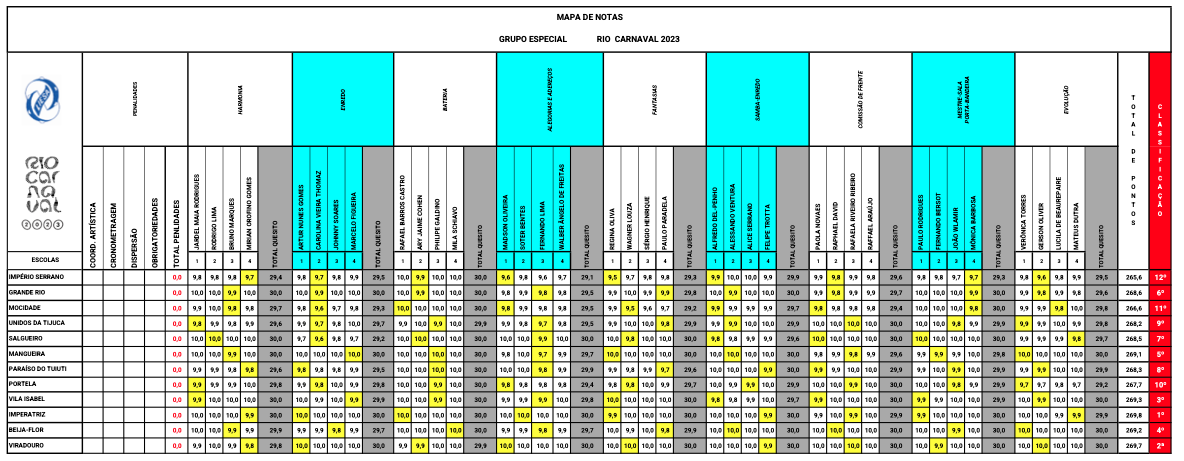 - Grande Rio (269.6 out of 270 points)