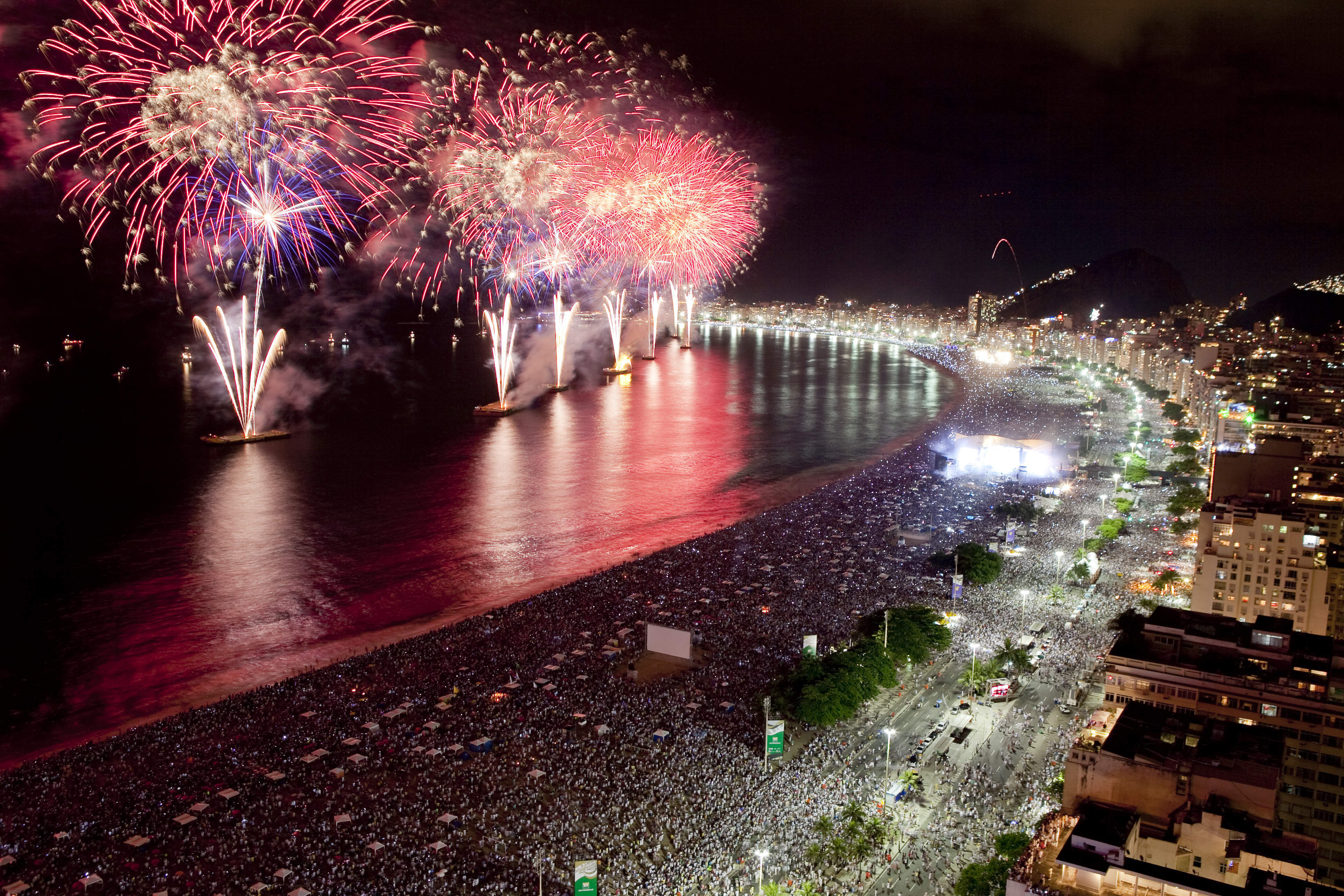 Hotel beachfront rooms are, not surprisingly, at a premium at this time, but well worth the investment if this is a once in a lifetime experience. Many hotels operate a minimum stay policy over New Year. Other options are the boats that sit off the coast, but the celebrations have also spread to other beaches in Rio and around the Lagoa. There is also a party up Sugar Loaf.